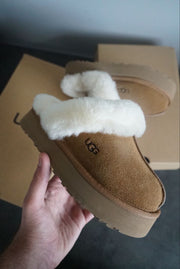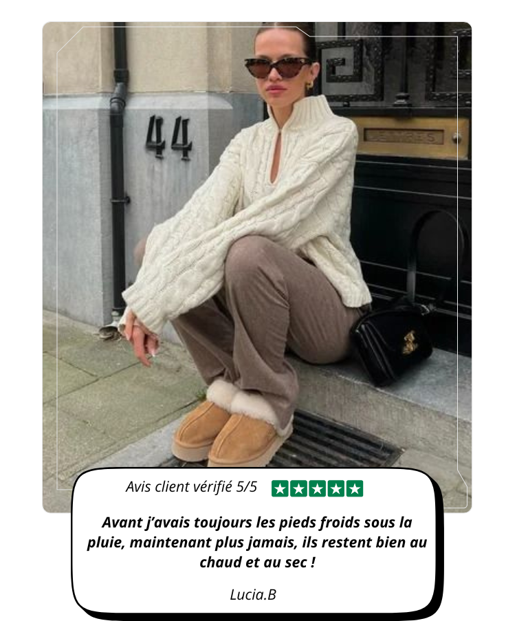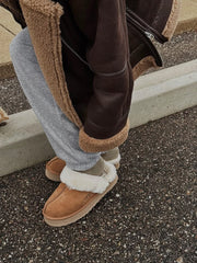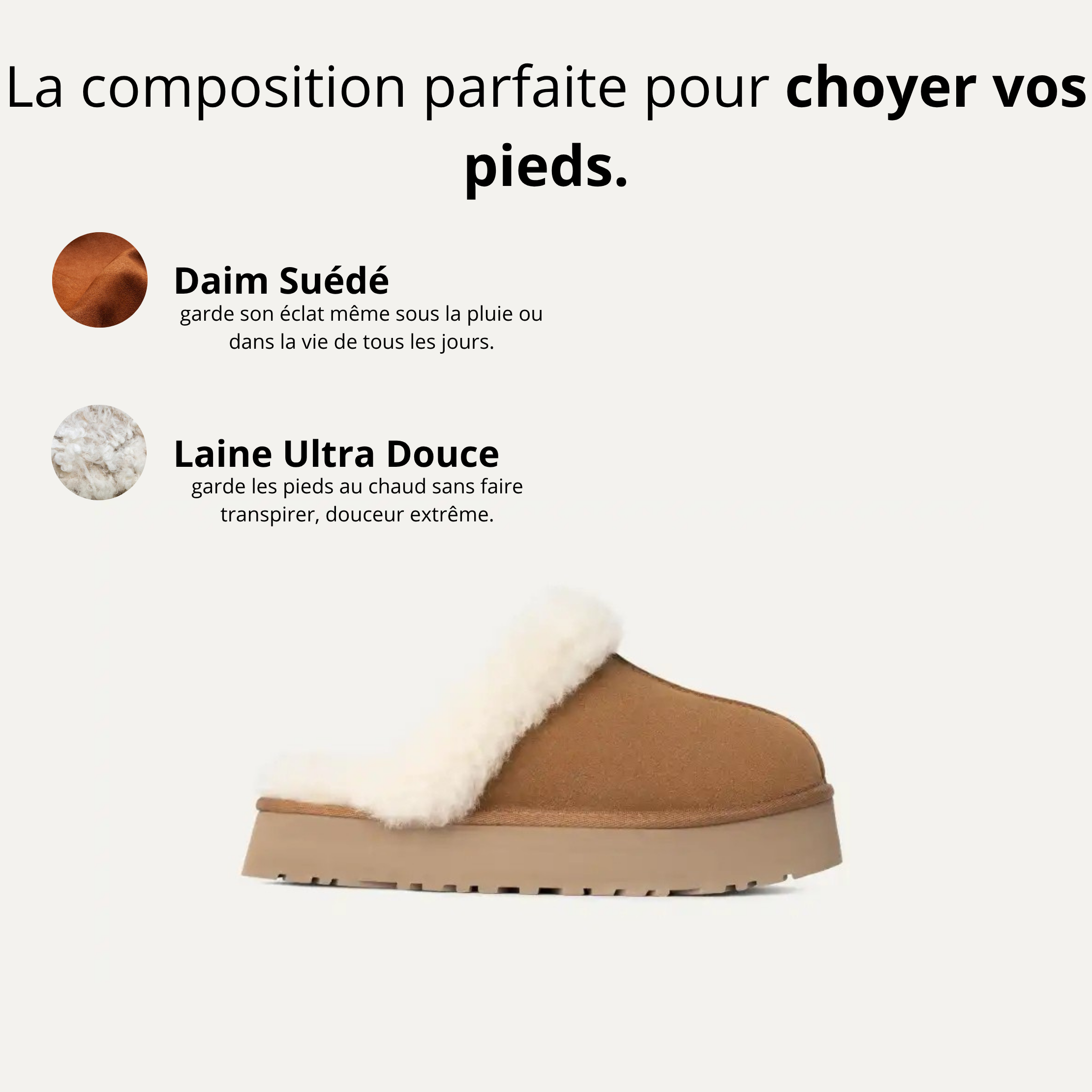 Daim suédé doux, laine dense et finitions soignées pour une qualité qui se voit et se ressent.